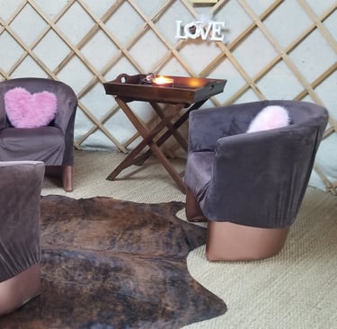 - le cabinet rond dans une yourte nichée dans un écrin de verdure